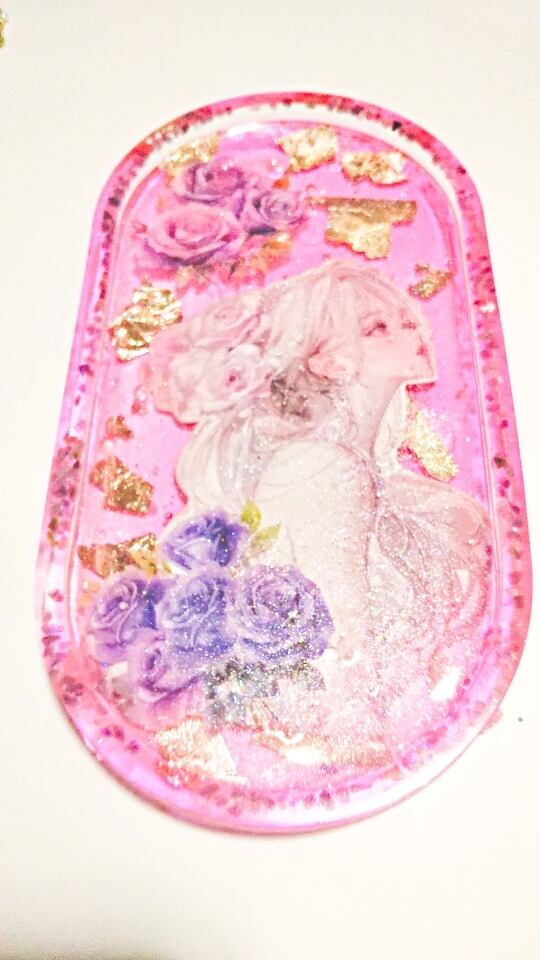 美しいピンクのアクセサリートレーが新登場しました!レジン素材を使用した女性のイラストが特徴で、どんなアクセサリーも素敵に演出してくれます。このアイテムは、持つ人に温かさを与える色合いで、日常の空間に特別な華やかさをプラスします。